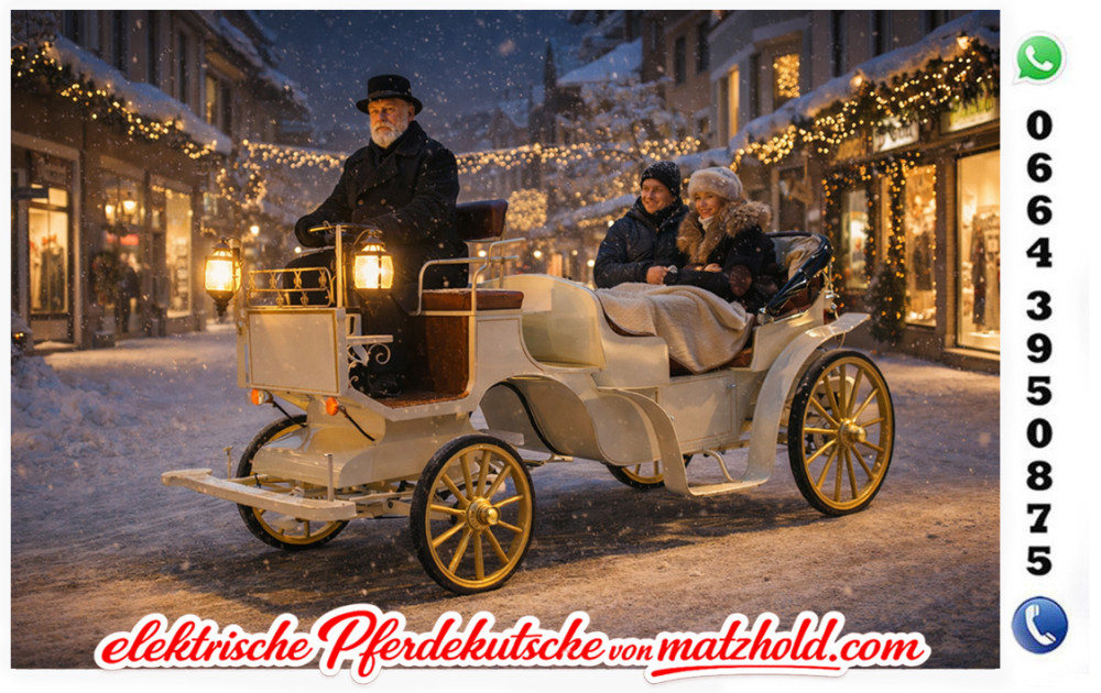Steigen Sie ein in die Zukunft der Tradition – mit der elektrischen Kutsche Wir sind auf der Zielgeraden – bald könnt ihr unsere elektrische Pferdekutsche live erleben.