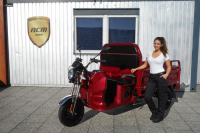 Antrieb: starker Elektromotor Motor rekuperiert, mehr Rechweite bei vorausschauender Fahrweise! Batterie: 60V, 5 x 45 Ah Ladezeit: 6 – 8 Stunden Reichweite: 55 km Topspeed: bis zu 25 km/h