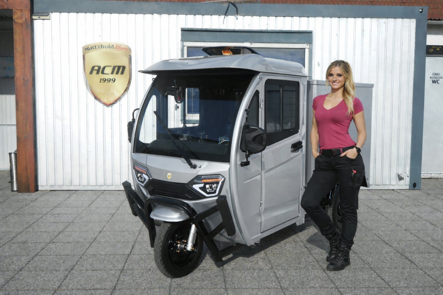 Antrieb: starker Elektromotor Motor rekuperiert, mehr Reichweite bei vorausschauender Fahrweise! Batterie: 72V, 6 x 45 Ah Ladezeit: 6 Stunden Reichweite: ~ 50 km Topspeed: bis zu 25 km/h