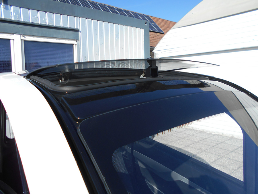 AUSSTATTUNG: Alufelgen Heizung / Lüftung Rückfahrkamera (Kunst)- Ledersitze Sicherheitsgurte el. Fensterheber Bluetooth Anlage Music Lautsprecher Dosenhalter Hub- Glasdach LED Beleuchtung LED Innenbeleuchtung Scheibenwischer & Wasch Zentralsperre mit Fernbedienung